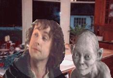 Now that Sam is gone, Smeagol has been picking on Drew Carey about his weight a lot more than usual. Drew got really frustrated and finally threatened to eat Smeagol. This scared Smeagol, who proceeded to scream and leap into Legolas’s arms. Meghan laughed. Legolas looked down, and asked, “What do you want, you decomposing hobbit?!” Smeagol answered, “I WANT MY DVD’S! DREW CAREY STOLE MY PRECIOUS DVD’S!” Merry and Pippin hid behind the couch so Smeagol wouldn’t jump on them too. “DREW CAREY STOLES THEM!! AND WE WANTS THE DVD PLAYER!! TO PLAY THE DVD’S!! AHHH!!” Drew just shrugged as Legolas responded, “At least he didn’t EAT your DVD’s.” Smeagol gasped in horror at the thought of Drew Carey eating his DVD’s.