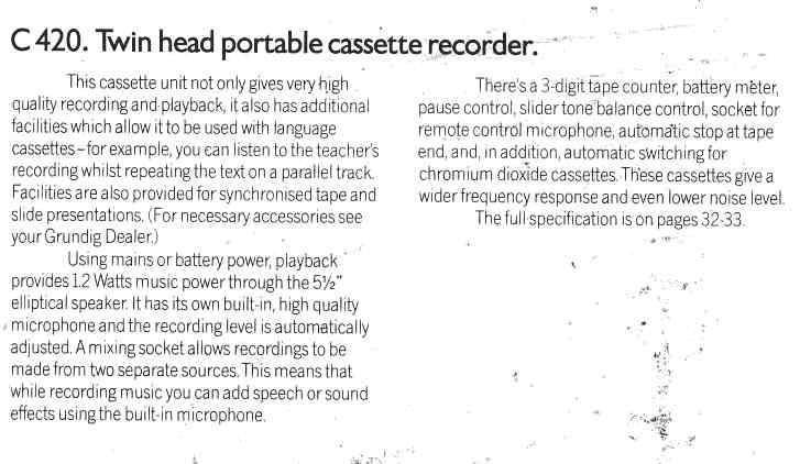 1974/75 Catalogue - C420 Cassette Recorder.