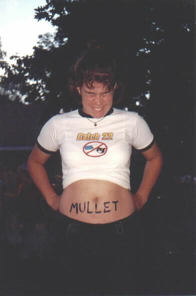 moi at camp... i convinced someone to paint "mullet" on my stomach.. they were really confused... it was worth it just for the sheer comedic value.. so katie took this lovely picture..