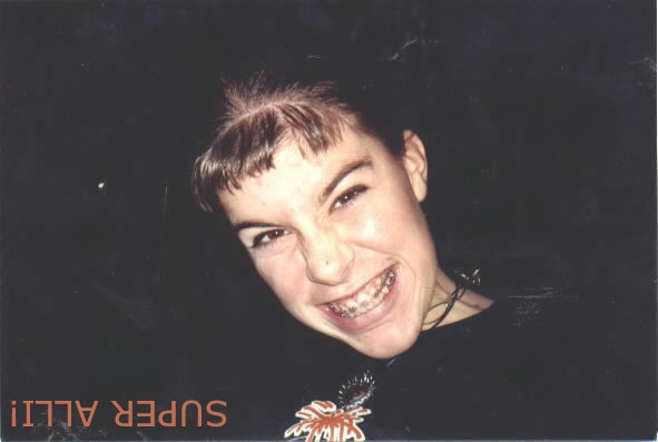 | katie took this picture, although i'm not sure when. it might have been that crazy night when we went to the mall and scared all those evil bitches in american eagle and dragged each other across the floor.. im not really sure. anyway its also old, and i find it quite funny... plus i'm wearing both awesome necklaces and the mustard plug shirt. yay. |