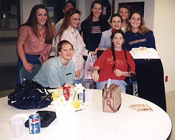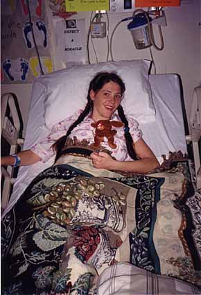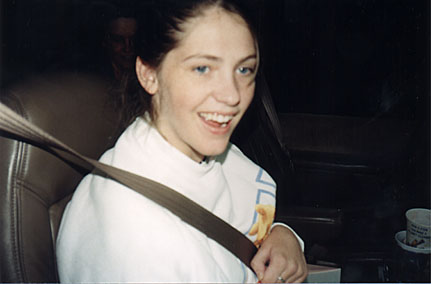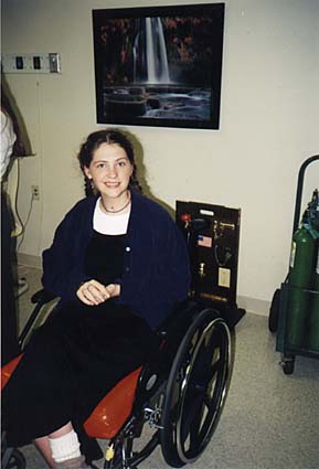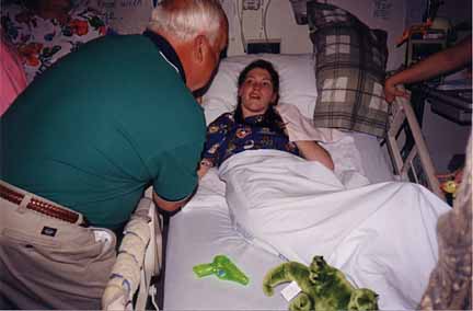Excited to be going home on her first 2 hour hospital pass, 90 days from the day of the accident. 5-13-98 |