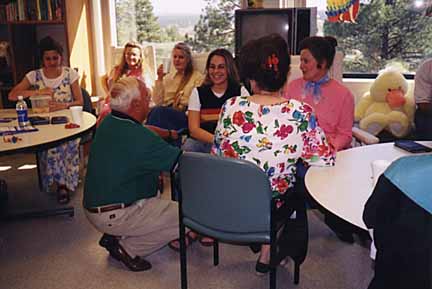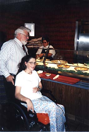 After her first time to church on 5-24-98, she spent a couple hours enjoying a Sunday dinner at Furr's Cafeteria. Buddies together again after dinner, right. |