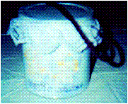 Prepare ahead of time: Drill holes the diameter of the cord into opposite sides of the top of the can for the handle using an electric drill. File holes smooth.