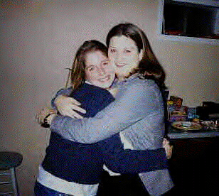 Bridget and Jenni giving each other a year 2000 hug.