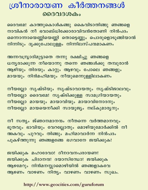 Daivasathakam Keerthanam is in Malayalam font Kerala