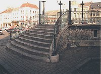 In de sokkel van deze kiosk, gebouwd in 1883, werden tevens openbare toiletten ondergebracht. (bron: Les kioskes à musique Qualité- village- Wallonie) sind 1983 geklasserd monument