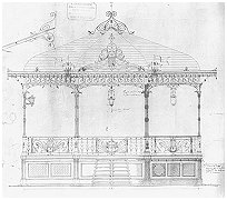 Kiosk gebouwd in 1899, hieronder detail uit ontwerp van A. Viroux- Michotte, bron : Les kiosque à musique, Qualité-Village-Wallonie