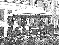 Reeds voor het einde van de 19de eeuw werd er op de Grote Markt regelmatig een kiosk geplaatst (foto 1911)