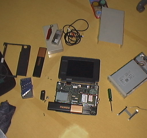 An outdated notebook that I got for pure Word Processing use. The floppy drive was pretty funky. (PCMCIA) |