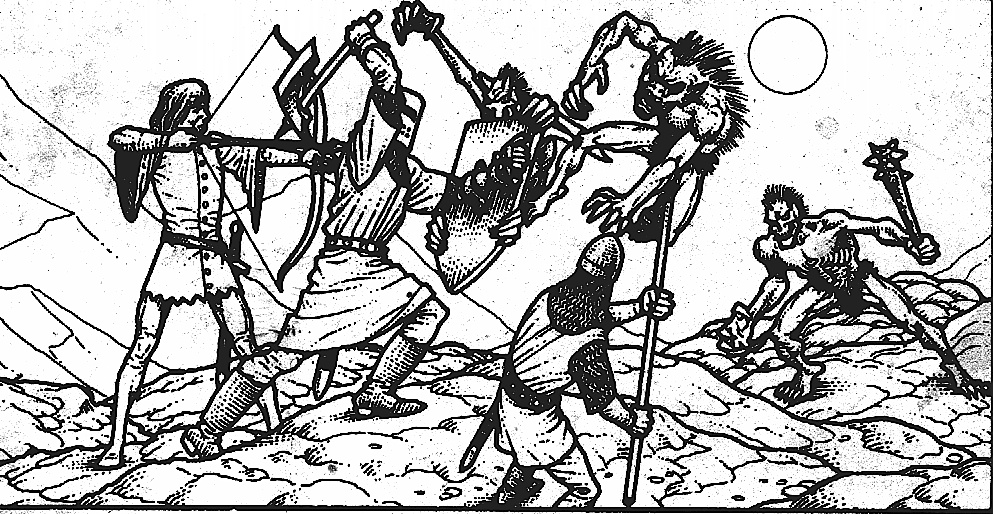 | Notes: (1) 1d4: 1=Bombardier, 2=Stag, 3=Deathwatch, 4=Slicer. (2) Bandits are 75% likely to be Stonehold raiders in the Phostwood, 50% likely in the Nutherwood. (3) Bandits (see 2 above) in the Phostwood and Ogres in the Nutherrwood. (4) Bandits (see 2 above) in the Phostwood, and Hangman Tree in the Nutherwood. |