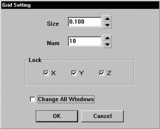 We want to draw the basic cross section outline of a guitar neck, but the grid spaces are too large to easily use Grid Lock and Add Point. Click Show once again on the View window and choose Grid Setting. In the window that appears type .1 for the Size and uncheck the Change All Windows option. Click OK and you should see a noticeable change.