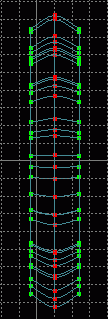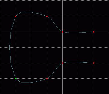 Switch to a Right view, Select - All and Extrude the outline 1 grid space along the Z-axis. Now switch to a Perspective view and with Grid Lock set to None connect corresponding points including the end points this time. However, connecting the corresponding end points creates a spline completion along the wrong spline. I wanted it to appear as if there was a four point circle at the end of the tuner, but it appears as if the tuner is a stretched half cylinder on the end instead. This would have happened even if the points had been connected before extrusion. The reason why is that the first spline to be completed is the first spline created. The first spline created was the outline, the second was the connecting spline of the extrusion. If we leave the current curves as they are and create new connecting curves to the same corresponding endpoints the next spline created will be completed. After the secondary curves have been added, use the