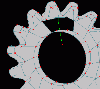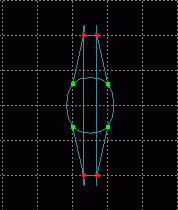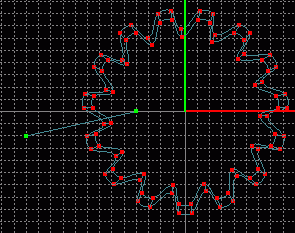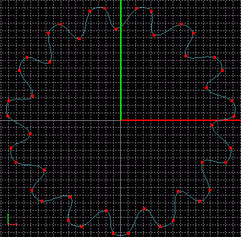 A circle needs to be inserted in the middle of this gear outline so that a hole can be made in the middle and that we may have something for corresponding points to actualy correspond to. Staying with the idea that 4 point patches are always best, we would need a 15 point circle. Since that Clip Shape is not available under Model - Insert it must be created. In a Front view, turn Grid Lock - All on, use the
