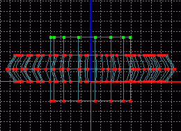 Peak the curves of the flatter part. Square Select the 4 points (realy 8, looks like 4 in Ortho) that make up the flat part and switch to a Right view. Scale only in the Z-axis until the points are positioned half their original distance apart. Choose Select - Inverse from the menu so that only the points making up the rounded portion are selected. Scale these points along only the Y-axis until they appear more circular, but do not make them too small.