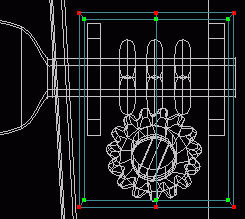 If the layers guitar_gears, guitar_pegs, and guitar_tuners are shown along with the newly modified guitar_neck layer, it would be seen that these other layers now lie in the wrong place and need to be moved, but I just realized something that is missing. There is no metal plate below the gears to prevent them from biting into the wood of the neck. I may as well add this piece now and then move the objects on top of it or else I will just have to move them again later after the plates have been built. However, the tuner assembly is too close to the edge at present to make a decent plate so it must be moved. Switch to the guitar_tuners layer and Square Select the left set of tuners and Select - Connected via the menu. UseModel - Translate to move the tuners .03 along the X-axis. Repeat the process on the right side's tuners moving them -.03. This looks better, but now the tuner head will scrape the guitar head if the tuner ever needs to be rotated. So select just the tuner heads with the Square Select tool and move the left and right sets -.03 and.03 respectively along the X-axis. Repeat for the guitar_gears layer moving the same distances left and right.