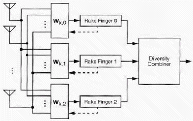 this structure each RAKE finger used the adaptive antenna to reject