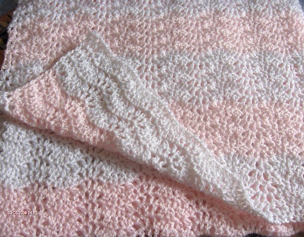 Hand crocheted, lacy, soft baby blanket 100% acrylic. The blanket is 37"x 46". It is available in white with pink, purple, blue, light green, or yellow. It is also available in solid white or solids in any of the pastel baby colors. Order item: BB1 Price: $35.00 for the blanket alone. $45.00 for the blanket and 2 newborn hats. (I get more compliments for this item than anything else that I make.) |