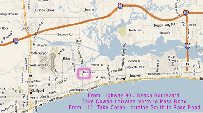which is one block east of Cowan-Lorraine Road on Pass Road in Gulfport.