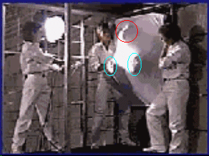 soldaki asistan da sol eliyle sahte yüzü kumaşa doğru iter. İki
