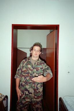 | Von Juli-Oktober 2001 absolvierte ich die RS als Nachrichtensoldat in Fribourg. Trotz vielen langweiligen und mühsamen Momenten waren diese 15 Wochen eine prägende Zeit und die positiven Seiten werde ich gerne in Erinnerung behalten. Nach der 3-wöchigen militärischen Grundausbildung folgte ein 3-wöchiges Fahrerlager am Col des Mosses (VD), eine 3-tägige Schiessverlegung im Sand (BE), die Verlegung in Utzenstorf (BE) und die Durchhaltewoche im Raum Oensingen-Kestenholz-Neuendorf (SO) inkl. 50-km-Marsch und mehrtägigen Übungen. |