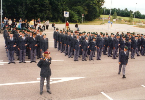 | Im Okt/Nov musste ich zum ersten Mal in den WK, mit der Zürcher Einheit Füs Stabskp 68, welche zur Felddivision 6 gehört, die darauf hin gerade aufgelöst wurde. Der WK war von 2 grösseren Übungen, NGST- und Nachrichtenausbildung, sowie wie gewohnt mit viel "umenüchle" geprägt. Die Nachrichtengruppe hat mich als Berner gut aufgenommen und die Hamburgertaufe war ziemlich human ;-) Trotz aller Bescheidenheit hiess der Leitspruch der Zürcher "Simply the Best", und bei der Fahnenabgabe in Arbon wurde "We Are The Champions" gespielt... An dieser Stelle viele Grüsse an die Gruppe Beat, Fredi, Berchti, Angst, J-D, Mike, Bümi, Roli und Wachtmeister Beni, sowie der legendäre Waldi! |