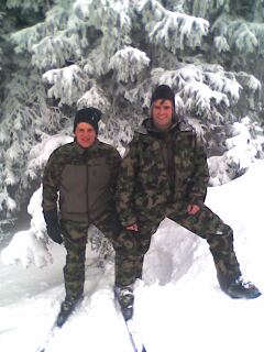 | In der Armee 21 bin ich nun in der Geb Inf Kp 17(3) als Fahrer eingeteilt. Nach ein paar Verschiebungen kam ich wieder mal nicht drum um einen WK zu leisten. Mit einer riesigen Kompanie von 270 Mann halfen wir bei den Lauberhornrennen mit, ich war im relativ gemütlichen Abschnitt Langentreien eingeteilt. Mühsam war vor allem die tägliche Anfahrt mit dem ganzen Plunder aus Wilderswil. Ausgang hatten wir nicht viel, aber der wurde trotzdem ausgenutzt, es reichte jedenfalls für einen Abstecher ans Rennen in Adelboden, und einen Abend im Weltcupdörfli.Links Oswald und René auf der Piste. | |||||||||||||||||||||||||||||||||||||||||||||||