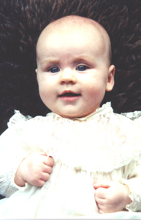Five Months Old Etta and I signed up for a twice weekly, half hour swimming "class" in the warm water therapy pool at our city pool. The class is structured with activities, such as encouraging the baby to splash her arms, and simulating a "freefall" from the side of the pool, which the teenage instructor suggests are teaching the babies lifesaving skills, but I have no delusions of Etta or any of the other babies becoming accomplished swimmers while they’re still in diapers. I view the class as an opportunity for Etta to enjoy the water and meet other babies, and nothing more. In fact, I don’t think I’ll sign up for the class again because we have just as much fun bobbing around in the water with the float toys and other moms and babies during the public swim. We’ve also joined a play group that meets once a week. Most of the babies ages five to eight months, and Etta is the youngest and most delicate. The babies lounge on their quilts, surrounded by their toys, in the center of the room. Moms create a perimeter around the dozen or so quilts. All of the babies except Etta and two other girls are able to sit unsupported. The group is a fusion of women from childbirth and new mother classes given by the hospital where our babies were born. Had I not been working, I could have joined earlier. With this gathering in addition to our twice weekly swimming, Etta will be getting lots of stimulation. Current Fascinations Etta loves tags and labels. She has many colorful soft toys, and now three lovely cloth books with lots of flaps, squeekers, crinklies, and three dimensional attachments, but it is the small white labels she homes in on. Those utilitarian fabric content/washing instruction tags fascinate her. She fingers them. She sucks them. She examines them with rapt interest. Etta is crazy for the kitties. She hears their collars tinkling and starts looking around frantically for them. It’s a problem when she’s nursing and trying to get to sleep, because she’ll be relaxed, hear the kitty’s collar, and she’ll pull off the breast, push herself up, and strain to look in the direction of the sound. I finally took the collars off of the kitties to keep them from distracting her. Etta also enjoys petting the kitties. Unfortunately, she enjoys it so much that she now shrieks with delight, which makes the kitties less willing to stick around and be petted, no matter how starved for attention they are. While out shopping one day I got two helium balloons for Etta. When I got home I put her on her back on the carpet, tied a ribbon around each of her ankles, and stood back as she kicked furiously to make the balloons dance above her. It wasn’t long before she figured out a trick: she rolled onto her side, brought her feet up, grabbed a ribbon at her ankle, and then worked her hands up the ribbon until she’d pulled the balloon down to where she could bring it to her mouth. I had to take the balloons away at that point because I didn’t want them to pop in her face, terrifying her. Etta plays with her tongue constantly. She sticks it out, curls it up, hums spittles around it, and thrusts it against the roof of her mouth to make a squishing noise. It’s as if she hadn’t realized it was there, and now, all of a sudden it’s something to be explored. She’s challenging her tongue to see just what it is capable of doing. Although she’s busy with her tongue throughout the day, it is at mealtimes that she’s most active with it. Just last week she was eating quite neatly, having mastered taking food from a spoon, sliding it to the back of her mouth, and swallowing. Now, with a mouthful of food, she rolls her tongue, sticks it out, curls it under, and smacks it against the roof of her mouth to make that exciting "squish" sound. Hair, or lack thereof Etta had a second balding a few weeks ago, and overnight her hair has sprouted again. She has a strange three-tone hairstyle. The top of her head is covered with velvety fuzz barely and eighth of an inch long. She has a bald stripe from ear to ear around the back of her head. The lower sides and back of her head has hair almost an inch long. There are still a dozen or so inch-long hairs on the top of her head that remain from her newborn days, and when static electricity makes them stand up they look like insect antennae! New Adventures in Food and Drink I gave Etta water for the first time today. She is so interested in holding the "cup" (An Avent bottle with a sipper spout and handles) and drinking from it, but it’s difficult if it’s not full to the top because it needs to be tipped up for the spout to fill with liquid. Also, when I put milk in it, I had to be extra diligent to clean up any spills to prevent bacteria growth. Having plain water splashed around is less messy. While spoon feeding Etta, she grabs the spoon as it nears her mouth and abruptly shoves it in, nearly gagging herself. When Etta sees something she wants, she grabs it at lightening speed. There is no longer a hesitation, a need to judge distance, or a thought about how to get it. I think she is soon ready for finger foods even though she only has two little slivers of teeth at this point. Long Distance My husband called home from the office and for the first time I put the phone up to Etta’s ear so that he could say hello to her. She smiled the instant she heard his voice and whipped her head around (in the direction of the ear which she’d heard the sound in) and couldn’t understand why he wasn’t there. The Common Cold… and a First Tooth? I developed a bad sore throat and headache and Etta was somewhat subdued, staring glassy-eyed for a long while before surrendering to sleep each night. She coughed occasionally, but didn’t seem congested. I wondered if she had a sore throat, but I had no way of knowing. Etta is about to get her first tooth, on the lower right. I’ve been watching her gum swell, thicken, and rise for days, but now there is a shar