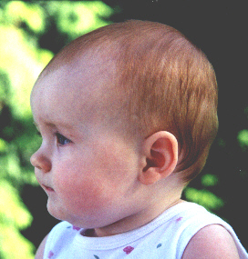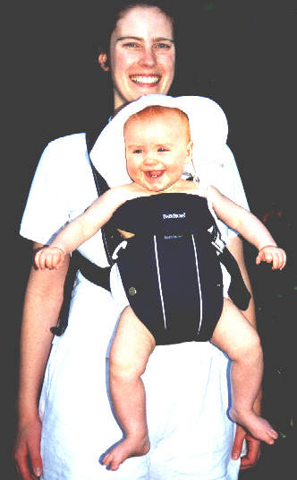 Seven Months Old and Changing Fast! I pulled out the measuring tape and Etta’s over 29 inches now, but still not 18 pounds. Physical and Mental Milestones Etta now rolls back to front and front to back purposefully and with ease. She has also learned that if she rolls enough times she can actually get herself across the room to an interesting object. Her curiosity is insatiable, she has object permanence, and she howls when something is taken from her. She gets frustrated when she can’t reach things she wants. Tears come easily and loud cries erupt instantly. Etta is now capable of picking at small objects, like the button on my shirt, with just an index finger and thumb. Her fine motor skills have always been excellent, but now she’s really fine-tuned her precision. Such talented fingers must be destined to bring beautiful music out of an instrument! But for now, this new skill is a challenge for me. If I put her on the carpet she digs between the fibers looking for "treasure" to put in her mouth. A cat hair, a twig, a blade of dried grass… all are irresistible to her. I’ve tried to train my husband and step-daughter to remove their shoes at the front door, but I can’t break them of the habit so they continue to track the great outdoors into our living room. When I put Etta on a blanket on the floor, she cleverly pulls at the blanket, bunching it up until she can reveal the carpet beneath. I guess I’m just going to have to vacuum every morning from now on. Just what I need, more housework! When given a new object to explore, Etta no longer puts it immediately into her mouth. She’s content to manipulate it in her hands for awhile, looking at it to see what she can do to it. Eventually it will go to her mouth, but not until she’s looked it over and felt it over well first. This development is significant for me, as it allows me an extra bit of leeway in catching her with forbidden objects. Although we’re in heavy baby-proofing mode, we still have a lot to do, and there are always new dangers lurking about. While carrying Etta in my arms she’s likely to swipe a paper from the counter as we walk by. If I have a laundry basket on my other hip I may not notice right away that she has grabbed something. That paper in her hand could have a sharp paper clip attached… Etta loves to chew on her toes. I’m packing up the last of the footed pants and outfits (size 9 - 12 months) which is probably good because she was chewing holes in the toes! She is now wearing pants with socks or Swedish moccasins. She removes the socks to access her toes, or chews on the leather sole of her moccasins. She has a few pairs of soft-soled crib shoes, but I rarely put them on her because tying and retying the laces at each diaper change is a hassle. Etta is trying hard to sit up, with painful consequences. When I lie her on her back on the changing pad she often protests, lifting her head and shoulders up and curling towards her belly, as if she’s doing sit-ups at the gym. She strains for a minute or so, then her head crashes back, startling her more than hurting her, as I’ve put extra padding on the changing tables to cushion her head. Another source of changing table injury is when she lifts her legs up, bringing her feet to her mouth for a nibble. When she loses interest, invariably she kicks her legs down with a thud, and sometimes her heel will strike the edge of the changing table instead of the pad. This hurts, and she wails accordingly. Etta is now able to "give," holding a toy out, offering it to be taken. It started with a silly game I invented a week ago. Etta has a raggedy stuffed beanbag kitty we call "Poly" (because it’s made of 100% polyester fiber, according to the tag). I put the pathetic "Poly" in my mouth and shook it back and forth like a dog with a chew toy, growling and snorting dramatically as Etta roared with laughter. I then dropped "Poly" from my teeth into Etta’s lap. She picked it up and tried to put "Poly" back in my mouth, grunting "UhUh" quite earnestly until I accepted. Now, whenever she sees "Poly" she gets excited and holds it out to me in hopes that I’ll start the game. Etta loves to pat. When I get her out of her crib in the morning or after a nap, she snuggles close and pats me on the shoulder. She also likes to pat the kitties (although they now run away as soon as she lets out a high-pitched squeal of delight) and the sheepskins (which she thinks are kitties). New Sounds, and a First Word? Etta says "MaMa" when she is tired, wants to be picked up, or is in need of food. Although I refer to myself as "mommy" when I talk to her (as in, "Sit here while Mommy gets lunch ready"), I don’t think that she associates the word "mama" with me. Maybe she does, who knows? We took a bag of clothes to the consignment store and came away with two hats, a pair of pants, and a new toy for Etta. The toy is carousel with pieces that go together to make the passengers: a cat, cow, pig, and dog. It’s hard plastic, easy to wash, and kept Etta entranced for over an hour. I would assemble it in front of her, spin the carousel, and she’d reach forward and pluck a piece off of it, usually tipping it over. I’d exclaim, "Uh-oh, it fell over!" By the end of the day Etta was saying "Uh-oh," although not in conjunction with any particular event. So now she says two specific things, "MaMa" and "Uh-oh," in addition to her rambling babbling. She also does a lot of gurgling, bubble blowing, and humming lately. Etta waves her right arm and hand many times during the day. I’ve been saying "hello" or "bye-bye" whenever she waves, and now if I say "hello" or "bye-bye" when we arrive or leave somewhere, sometimes she starts to wave. I wouldn’t say the association is 100% yet, but there is clearly a connection forming. New Foods For dinner one evening Etta had hard boiled egg yolk for the first time. I mixed it in with her rice cereal (prepared with breast milk) and she gulp