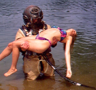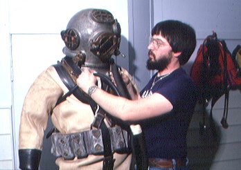 hardhat diving rigs: Rich Riley and Dave Sutton. Here Sutton poses in