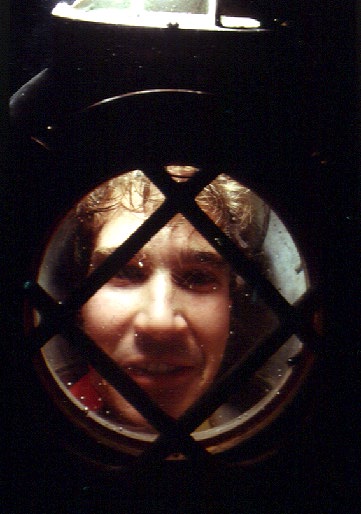 was snapped with a Nikonos TTL with the strobe pointed into the helmet's top light.