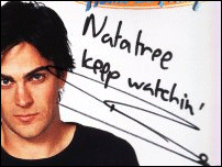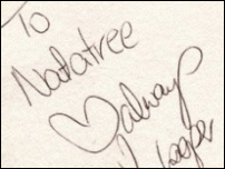 We'll, I'm not a star, nor am I slut. But I like the sound of it. I suppose I admire celebrities, I mean, I live for music and movies, and without them where whould the idustries be? But yeah, I think everyone idolises someone. {The Ned Kelly Premiere} (link) {Rumba} (link) {Home and Away} I am a fan of Home and Away, yes. Sue me. And I loved Jude Lawson, before he ran off with Shauna. I got Danny Raco, Bec Cartright, Kim Cooper, Zac Drayson and Cameron Welsh (not shown) at seperate underage disco's i've attended. I've got around a gazillion auto's from Zac, cause he was a funny bugger. I've gotten 2 signed pictures sent to me of Ben Steel, one addressed to Natalie, wishing me a Happy Birthday (not shown) and the other I won from a comp. My friend Kerri got the Beau Brady signature for me. She was a Beau fanatic. I actually talked to him on the phone, she kinda said "Here, talk to my friend" and mwa-la, I'm talking to Beau Brady on the phone! Little to say, like most people, get confused when I say my names Natatree, and it came out something like Natalre! {Sara-Marie} I've meet Sara-Marie twice. She was a doll. I have her signature around a gazillion times also. On the book, on my bunny ears, on the single.. the list goes on .![]() {autographs} In order L-R. Danny Raco (Alex from Home & Away). Kim Cooper (Gypsy from H&A). Bec Cartright (Hayley from H&A). Zac Drayson (Will from H&A). Ben Steel (Jude from H&A). Sara-Marie (Big Brother). Kittie. Billie Piper. Beau Brady (Noah from Home and Away) . .![]() . .![]() .![]() ![]() |