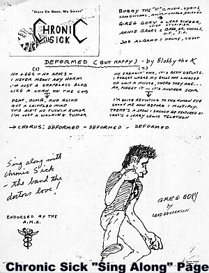 | "You can be deformed - but happy deformed " Chronic Sick 1982' |