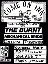 | Mechanical Bride released several cassette demos recorded at the House Of Wax on 4-track. These are good recordings that Saxon Sound / OneUp is making available again. Songs have appeared on compilations by The Jersey Beat, Positive Effort, Smash Apathy, Inward Visions, and the classic " NJ and You " Comp on Headache Records which includes "The Future Is Green". Saxon Sound & OneUP are re-releasing a full-length Mechanical Bride CD which includes the recordings made by Billy T (The Burnt / Wretched Ones) and several "live" cuts from CBGB's, and The Rat Trap Cafe. Click on the SAXON logo above to get to the Saxon House and get information. |