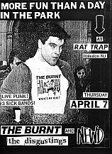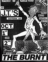 | The BURNT were a true "working class" band that wrote non-political songs about working, drinking, and all the dumb things that were particularly native to Northern New Jersey. Being Punk was just a natural side effect of growing up and hateing the music that was playing in the clubs at the time. Spiked hair, Punk clothes, and all the rest of the Halloween effect that went along with the "classic" view of Punk, was not where the BURNT were at. Tee-shirts, jeans, hard music, and a great sense of humor were (and still are) the cornerstones for the BURNT and HEADACHE RECORDS. The BURNT and EARWAX always had a good relation. We did a lot of drinking, shows, and articles in New Jersey. Key points of interest included: The Brighton Bar, The Rat Trap Cafe (aslo known as The Belmont Cafe), The Showplace (in Dover), and more hall shows (in the best of NJ's cornfields) than any of us can remember. The shows were always a great night of fun because this band knew how to have fun and hit hard. Nothing plastic here. Though there are few BURNT recordings laying about - and they only toured once or twice - here's a laisting of some of the material that (may be) still available. The BURNT went on to become THE WRETCHED ONES - are probably one of the best Punk band...period - and HEADACHE RECORDS continues to release great Punk records. |