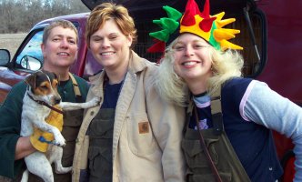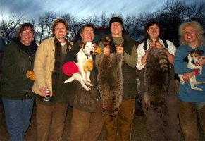Jenni Mitchell, Wendy Houtz, Debby Calloway, Jane Longendofer, Stephanie Poppe & Mary Beth Masi with Zack & 2 very LARGE raccoons. KS - Winter 2003 |