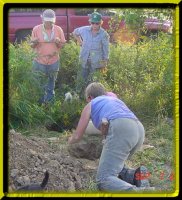 Connie Jones and myself watching a terrier work after a very hard dig. W.V. - Summer 2001 |