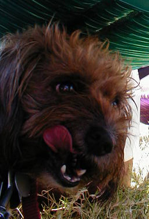 | Sandy is our big sister that lived here before we were even born. She is a "mutt". That means she has all different kinds of dog in her family. Our family found her as a stray. They say Sandy sat out on the porch and howled because she was so lonely. Well she sure isn't lonely anymore! We like to pick on Sandy and drive her crazy. Duke LOVES to just sit there and bark at Sandy for no reason!. He is silly. That mean ole Sandy. She likes to hide food from us. She'll take food from daddy Sammy and momma Ruby and put it on the floor. Then when we try to take it she growls and chases us off! What a mean ole lady Sandy is. But we get sneaky every now and then and manage to steal that food right away! Sandy acts like she doesn't like to play but she sure does like to steal the ball when we play fetch! She snatches it away and then won't bring it back. And she likes to chase Suzy Q a lot. Suzy is her favorite playmate. But she'll play with all of us sometimes! Big sis Mary doesn't have a lot of pictures of Sandy because she's what they call "camera shy". Goodness knows that none of US knows what that means! Momma Ruby thinks Sandy gets afraid of the bright light that goes off when they take pictures. That would make sense since Sandy is afraid of lightening too. She hides during thunderstorms. But not us! We aren't afraid of anything! |