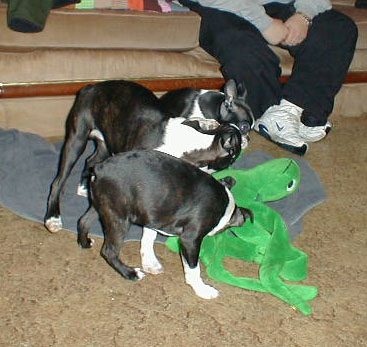 We got a great big fun present from aunts Steph and Evelyn! It's a big green turtle with tons of legs. It squeaks and rattles and lots of cool stuff like that.