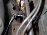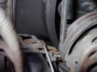 Using a drain plug I got from VIP I added a drain hole to the transmission pan. I put this on the right side (from above the tranny facing the front of the truck) so if I scrape the pan on any rocks it wont get ripped out. Because of the design, the plug wouldn't allow all the fluid to drain out on the bottom, so I decided that the side would be the best place. I put it a little higher in the pan to get further away from those nasty rocks, but putting it further down could get almost all the fluid out and still be away from the rocks. The plug it's self is rather interesting. It is a large steel bolt, with a hole through the axis of the bolt and a smaller one in that hole. So you basically drill a big hole, and put the big bolt in there. Then when you need to drain the pan you open up the little bolt. Here is exactly how I did it. After drilling a hole not quite big enough for the large bolt to go in, but big enough for it to thread through (no point in tapping sheet metal) I put a ring of gasket maker around the outside of the hole (even though the drain plug came with a gasket - which I still used). I ratchted it into place, and put a ring of gasket maker around the back of the hole. Then I tightened down a nut that fit the drian plug so I would sandwich the sheet metal in the middle. If this drain plug were to get ripped out, I would most likely have more to worry about than looseing fluid. I then put a bead of gasket maker along all seams to make sure I would not loose any transmission fluid. Now I wont have to remove my pan to change my tranny fluid, and the fix should be fairly trail proof. Now the next fix was 2 of the 16 bolt holes that hold on the tranny pan were stripped. I found 2 slightly larger bolts that matched each other in the bolt-bucket and a matching tap. Re-tapped the holes and they were good to go. Unfortunately the stock bolts are 1/2" and the bolts I found were 9/16" - but the heads look completely different so the next guy should be able to tell if he looks at them. Then I replaced the tranny filter with a new one. Laid a bead of gasket maker around the top of the pan and attached with 16 bolts. I used gasket maker instead of a true gasket because I shouldn't have to take the pan off agian. The governor cover off the Jimmy transmission, like the tranny pan, was more rusted than the one off my transsmission so I again opted to change it out. No problems there, just scrapped off the old gasket and used gasket maker for a new stylish red-orage gasket. The tail mount for my 85' is 3-4 inches shorter and 2-3 inches wider (in other words completly different) than the one for the 83' so I had to change that as well. However trying to take the tail mount off the 83' tranny was a bitch! One of the 4 bolts got rounded over and I had to beat the head off the bolt with a cold chistel, no fun! When installing the 85' mount on the 83' tranny I also used gasket maker to suppliment the old gasket I reused.