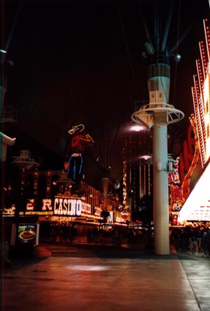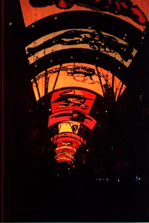 That evening after seeing the pirates sink the navy at the Treasure Island hotel we had a buffet dinner at one of the hotels and then headed for the old part of town. Here they covered the street with a mesh covering and used it for a light show.