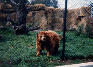 One day, Samson was found in a local pool and looked like he was very sick. Game wardens were called in to capture the old, toothless bear and the decision was made to euthanize him due to his old age & poor health. Local residents, for whom Samson was never a bother, formed a movement to save Samson eventually convincing Gov. Pete Wilson to issue a reprieve for the bear. Orange County Zoo officials offered to take him in and constructed the nice home Samson enjoys today (complete with swimming pool & waterfall) as you can see in the accompanying photo.