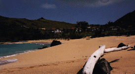 Biggest disappointment of the vacation this year! This was my favorite beach last year but the 1999 hurricanes really made a mess of Cupecoy. Sand erosion left boulders at the water's edge and what what little beach is left is mostly ugly; the treeline suffered severe damage from erosion; the concession was destroyed (but the locals still set up a small lo-lo on the beach). I'm talking about the beach furthest from the Sapphire resort. It's mostly a naturalist beach, but there are plenty of people who wear their bathing suits.