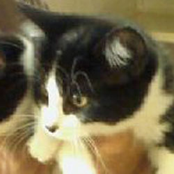 The kitten pictured right was found shivering inside a dumpster that he had been thrown into. If someone had not heard his terrified cries, a tragic ending certainly would have befallen him. His fearful cries have changed into purrs of contentment in the arms of his new adopted family.