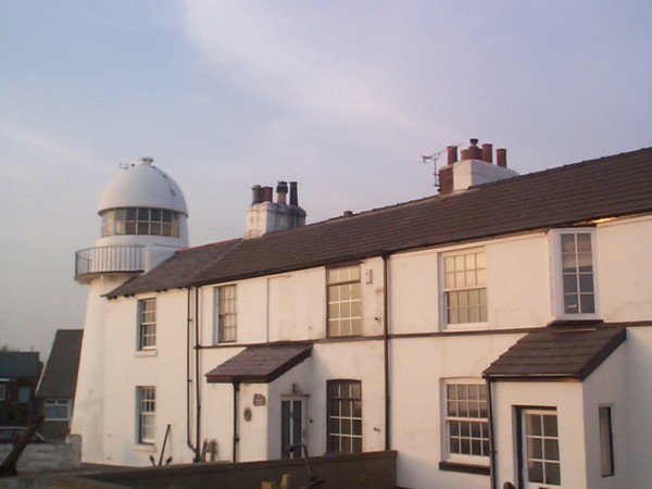 View of the lighthouse tower and the Old Coastguard Cottages along the river front.