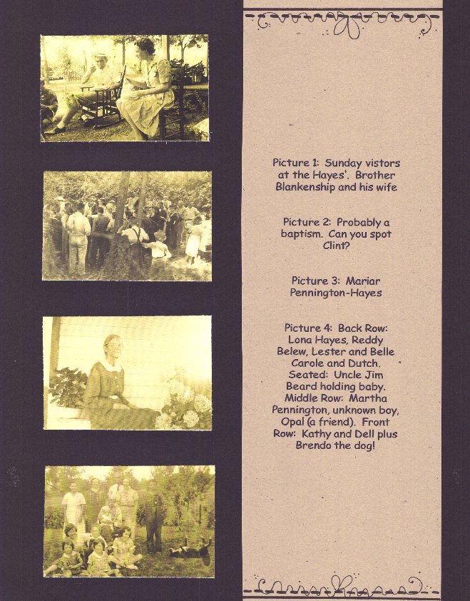 [ My Family Tree ] [ Pennington ] [ Introduction ] [ Medieval England ] [ England ] [ Maryland ] [ Virginia ] [ South Carolina ] [ Georgia ] [ The Road to Tennessee ] [ Tennessee ] [ Tennessee ] [ The Civil War ] [ Clint and Lona Hayes ] [ Clint and Lona Hayes ] [ Clint and Lona Hayes ] [ Lona ] [ Scrapbook Pages ] [ Family Group Sheets ] [ Genealogy Resources ]