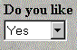 <B>Do you like college football?<B><BR> <SELECT NAME="like-football"> <OPTION>Yes <OPTION>Sort of <OPTION>No </SELECT>