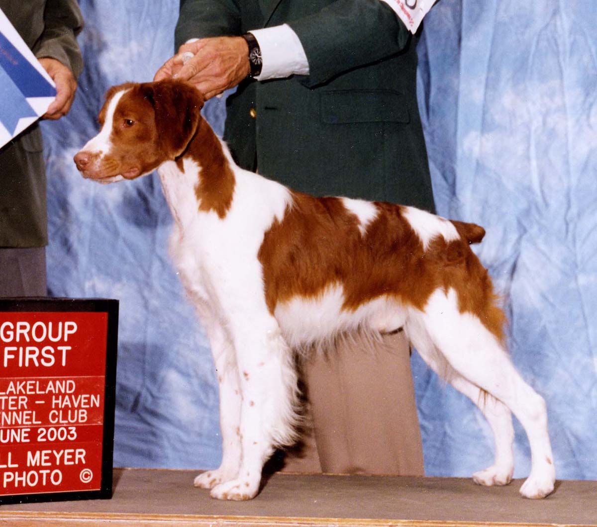 In 1984, I began taking conformation handling classes from Susan Roberts. Sue has been showing, breeding and hunting over her brittanys for about 20 years. She was kind enough to allow a very novice handler to show a young male special of hers, CH Celt's Casino Fred.