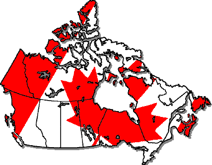 Canada is the world's second largest country, surpassed in size only by Russia. We have a total area of 9,970,610 sq km (3,849,652 sq mi)of which 755,180 sq km (291,575 sq mi) is covered by bodies of fresh water such as rivers and lakes. Canada contains great reserves of natural resources, notably timber, petroleum, natural gas, metallic minerals, and fish. It is also an important manufacturing country. Most of Canada's inhabitants live in the southern part of the country, and vast areas of the north are sparsely inhabited. The country is divided into ten provinces (Alberta, British Columbia, Manitoba, New Brunswick, Newfoundland, Nova Scotia, Ontario, Prince Edward Island, Quebec, Saskatchewan) and two territories (Northwest Territories, Yukon Territory). A third territory called Nunavut, to be carved from the present Northwest Territories, will be created in 1999. The name Canada is derived from an Iroquoian term meaning "village" or "community". The first use of " Canada " as an official name came in 1791 when the Province of Quebec was divided into the colonies of Upper and Lower Canada. In 1841, the two Canadas were again united under one name, the Province of Canada. At the time of Confederation, the new country assumed the name of Canada.CANADA --- Bounded on the north by the Arctic Ocean, on the northeast by Bafin Bay and Davis Strait, which separates it from Greenland; on the east by the Atlantic Ocean; on the south by the United States; and on the west by the Pacific Ocean and Alaska.