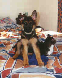 Chaela was born in Cape Town on February 4th, 1997. She is the daughter of a West German line bitch and an East German sable dog, and is a high-drive puppy at 8 months of age. Chaela was one of 4 puppies in her litter, one of which died, the other 2 are members of our club. Chaela took 3rd in her first puppy show at age 4 months, when she received her VP grading. She was meant to enter an official show last week, but unfortunately went into season 4 days beforehand and had to be withdrawn…she's still in kennels as I write this & I have to admit our lives are emptier without her.