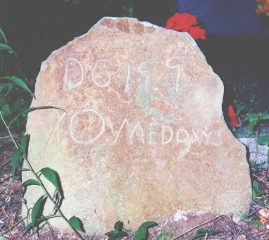 The dispositions of the graves of the victims are as follows: George Meadows is buried in a separate grave just to the northwest of the above monument. His stone is rough-hewn and very hard to read: